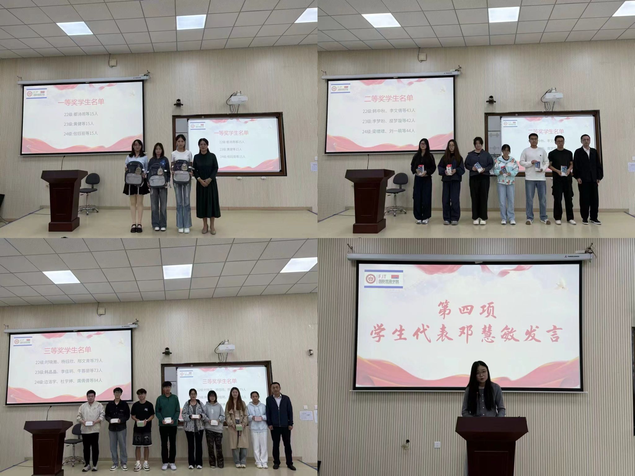 领导对所有获奖学生表示热烈的祝贺,肯定了他们的实践成果,并为获得一等奖、二等奖及三等奖的学生代表颁发奖品,鼓励大家继续保持这份热情与努力,在未来的道路上再创佳绩。