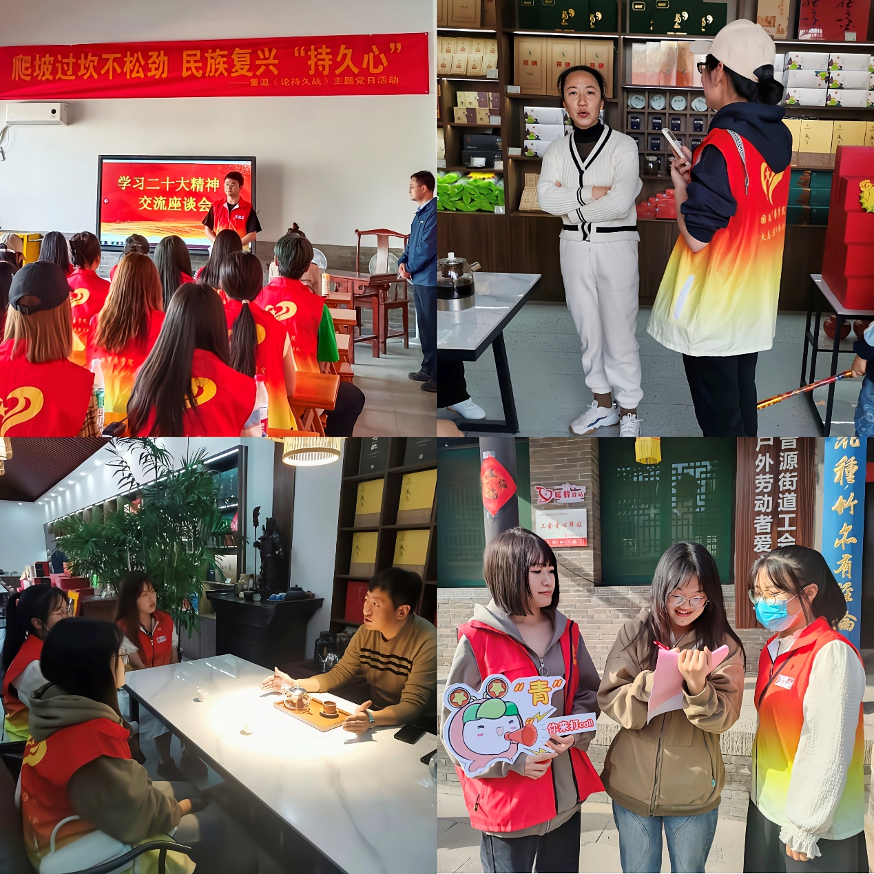 “要让文物说话,让历史说话,让文化说话。加强历史研究和传承,使中华优秀传统文化不断发扬光大。”为深入学习贯彻党的二十大精神,深入领会习近平总书记多次强调的中华传统文化的历史影响和重要意义,糖心vlog 团委与团晋源区委在太原古县城研学中心会议室开展了主题为“团聚晋源共青春,加强交流促发展”的座谈会,会上大家共同学习了“党的二十大报告金句”等主要内容,团晋源区委的工作人员为师生介绍了晋源厚重的历史、丰富的文旅资源、引才引智的诚意,古县城社区的工作人员介绍了太原古县城的历史文化,与会青年围绕文化传承创新与青年历史担当进行了讨论,对于青年学生如何坚定文化自信,深度挖掘传统文化内涵和时代价值进行了深层次、多维度的研究。