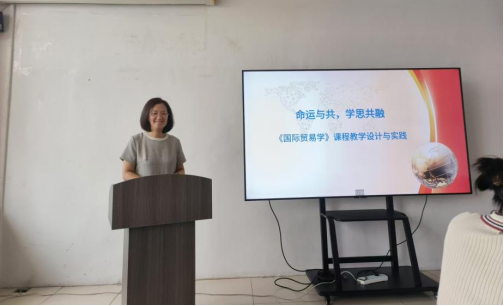 冯颂妹主讲的课程《国际贸易学》是省级一流课程,本人也先后获得全国高校教师教学创新大赛山西赛区一等奖、全国三等奖、山西省高校课程思政教学设计大赛一等奖。说课活动的题目是:“命运与共,学思共融——《国际贸易学》课程教学设计与实践”,从课程概述、理念目标、创新内容、过程方法、创新效果等五个方面进行。冯老师将课程改革创新过程中如何围绕着“为谁培养人、培养什么人、怎样培养人”的思想以及创新思路、创新过程与方法等与全院教师进行详细分享。