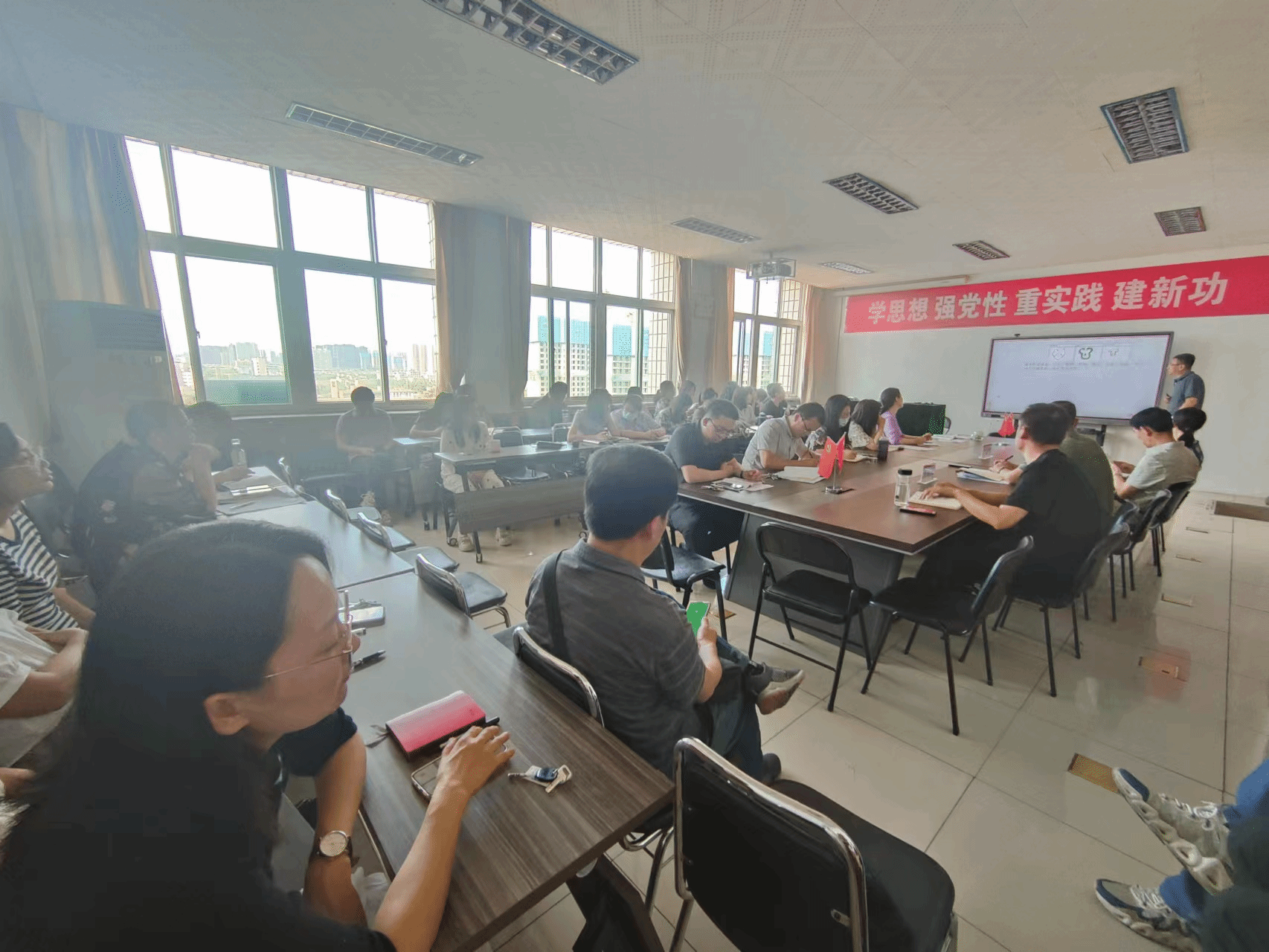 党委书记陈晓虎主持,全体教职工参加。